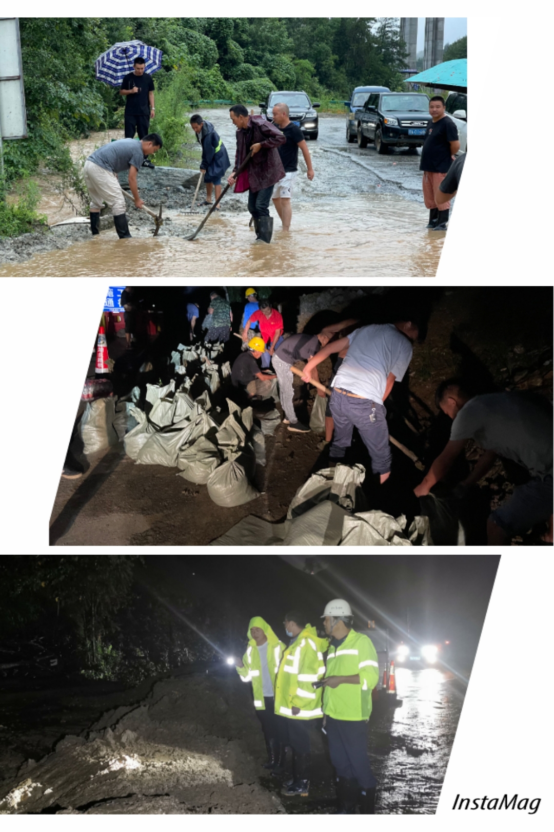 十淅2標項目降雨前深入現場針對排水系統、高邊坡穩定性等開展防汛隱患排查,配合政府相關部門對可能發生重大險情的地段進行三次摸查,重點加強了三清廟大橋、E匝道橋、路基六隊等汛情多發地的監控。暴雨來臨后,十淅項目與時間賽跑,組織工人上足機械設備,建立沙壩防汛搶險,一周內搶通村道十余公里,與地方村委會一同轉移受災群眾十余戶,爭取將當地損失降到最低。