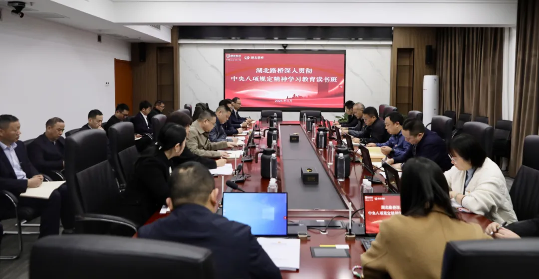 3月28日,湖北路橋黨委舉行深入貫徹中央八項規定精神學習教育讀書班,深入學習貫徹習近平總書記關于加強黨的作風建設的重要論述,認真領會中央八項規定及其實施細則精神,示范帶動全公司上下學習教育走深走實。公司黨委書記、董事長潘新平主持開班式并講話。