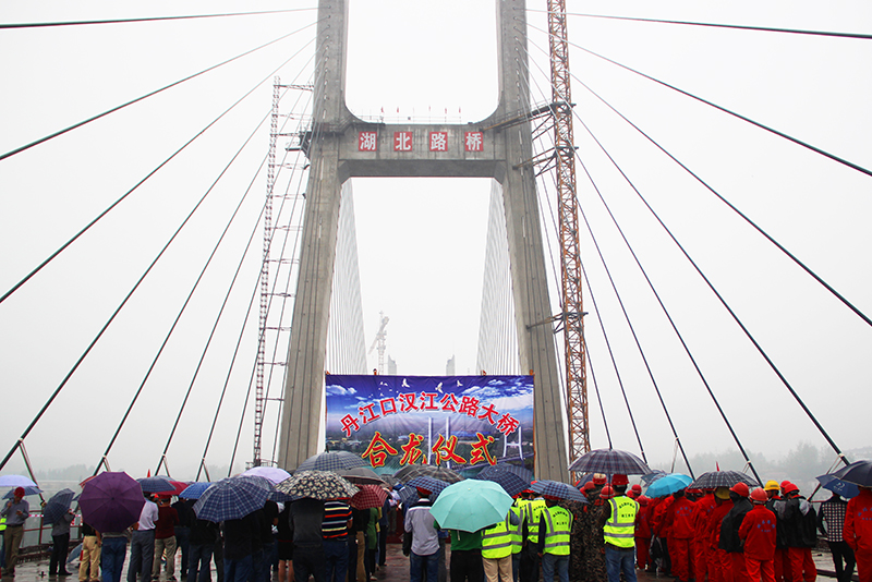 丹江口漢江公路大橋項目位于丹江口大橋老橋下游約1公里處,大橋東岸經省道孟土路平交后與目前在建的庫周公路東環段相連;西岸與省道丹沈路平交后接東環線。丹江口漢江大橋橋型為雙塔斜拉橋,項目全長929米,其中大橋橋長767米,橋面寬度24.5米,采用一級公路標準進行建設,設計速度為80公里/小時。工程投資總額約為4.0億元,項目建設工期34個月。湖北路橋通過公開招投標中標,并以BT模式承建該工程,截至2015年7月,累計完成產值約2億元。