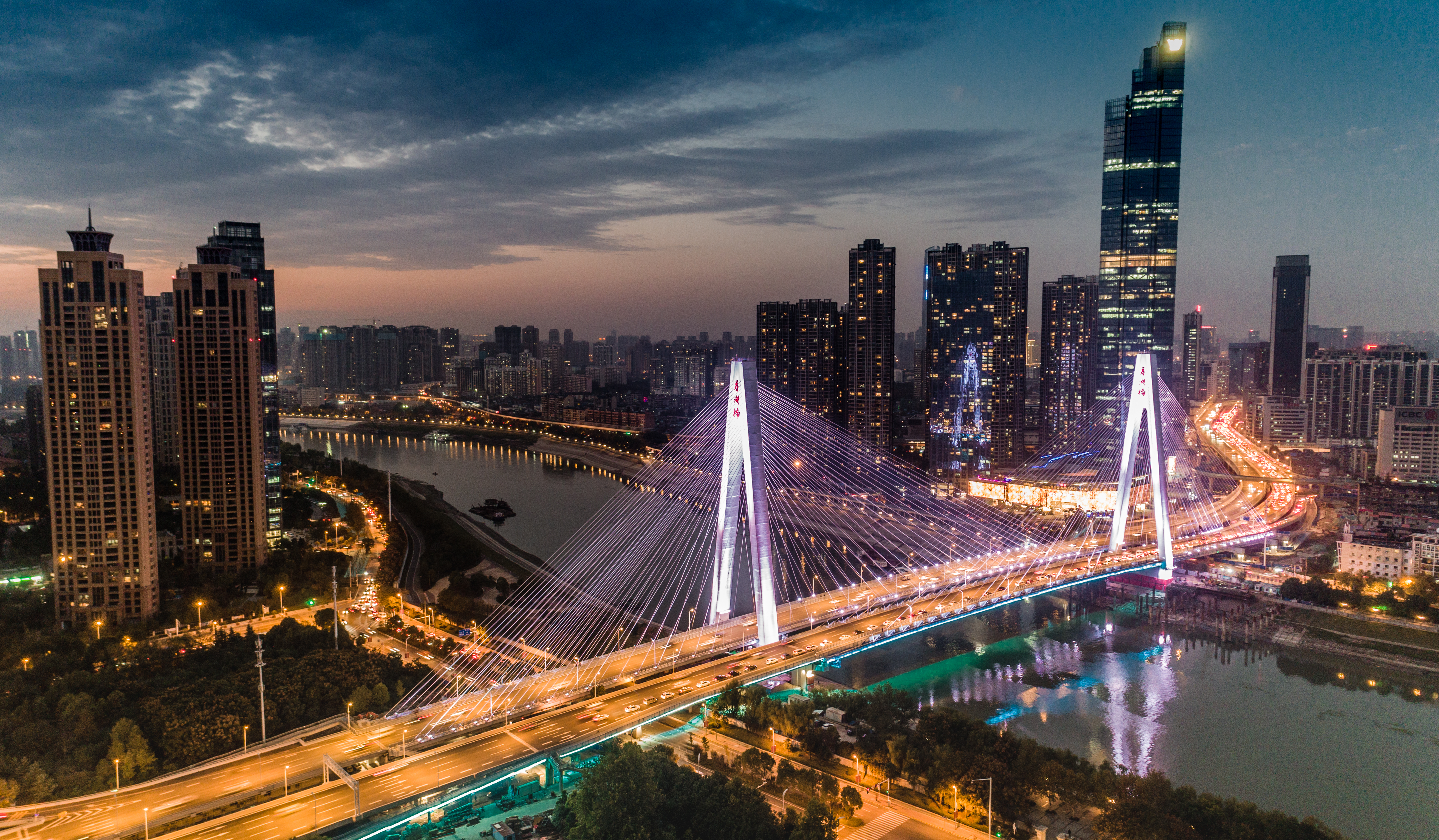 江漢四橋工程南起漢陽(yáng)梅子山通道,北至漢口京漢大道,全長(zhǎng)約1.86KM,主線按城市快速路標(biāo)準(zhǔn)建設(shè),設(shè)計(jì)時(shí)速60KM∕h、設(shè)雙向6車(chē)道,地面輔道按城市次干路標(biāo)準(zhǔn)建設(shè),設(shè)計(jì)時(shí)速40KM∕h、設(shè)雙向4-6車(chē)道。工程內(nèi)容主要包括:拓寬既有梅子山通道、新建江城大道下穿琴臺(tái)大道地下通道、在既有月湖橋下游新建一幅跨江大橋及兩岸引橋、新建琴臺(tái)大道上跨江城大道高架橋,以及相配套的人行天橋、通道、道路排水、交通、綠化、照明等工程。項(xiàng)目于2018年8月31日建成通車(chē)。