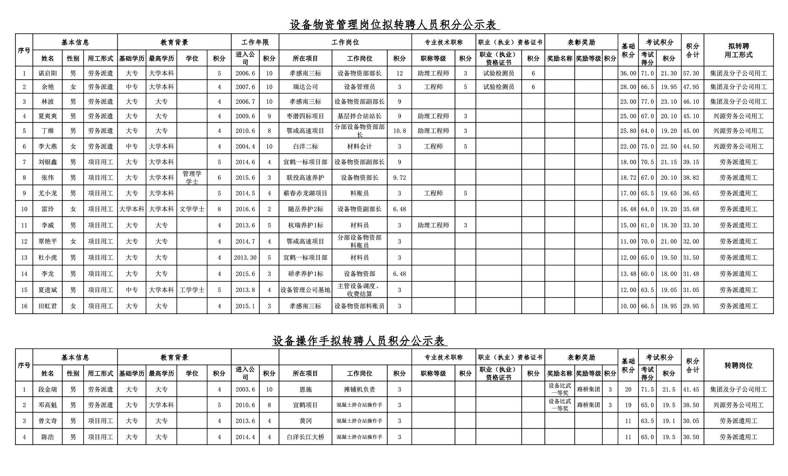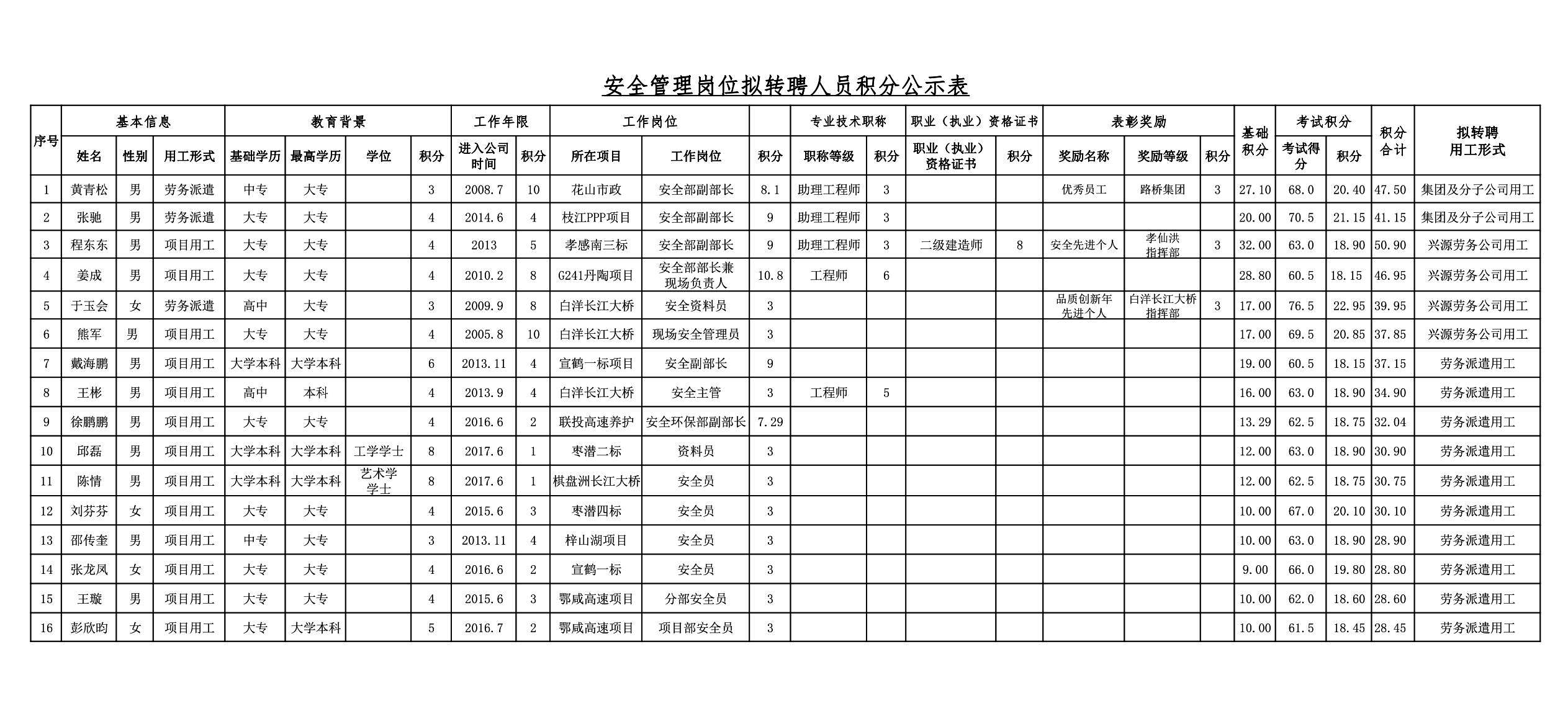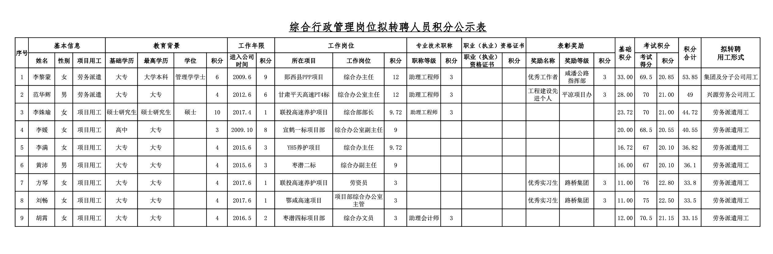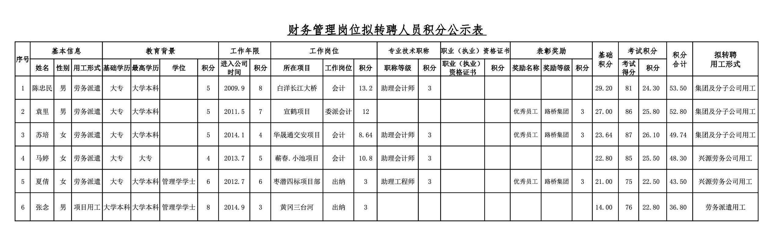 湖北路橋2018年關于擬轉聘人員的公示