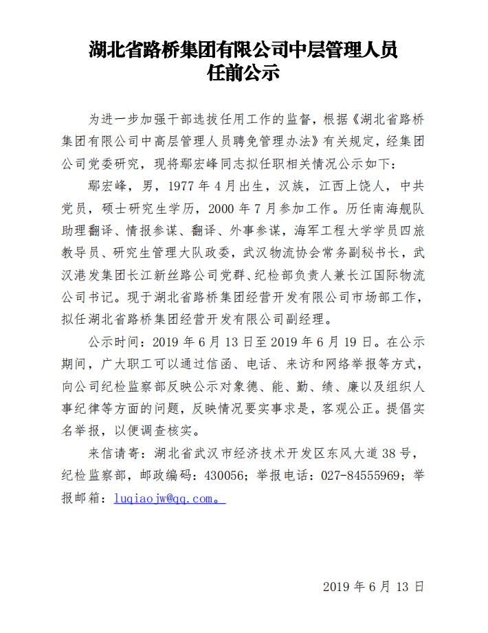 關于湖北省路橋集團2019年轉聘考試筆試成績公布的通知