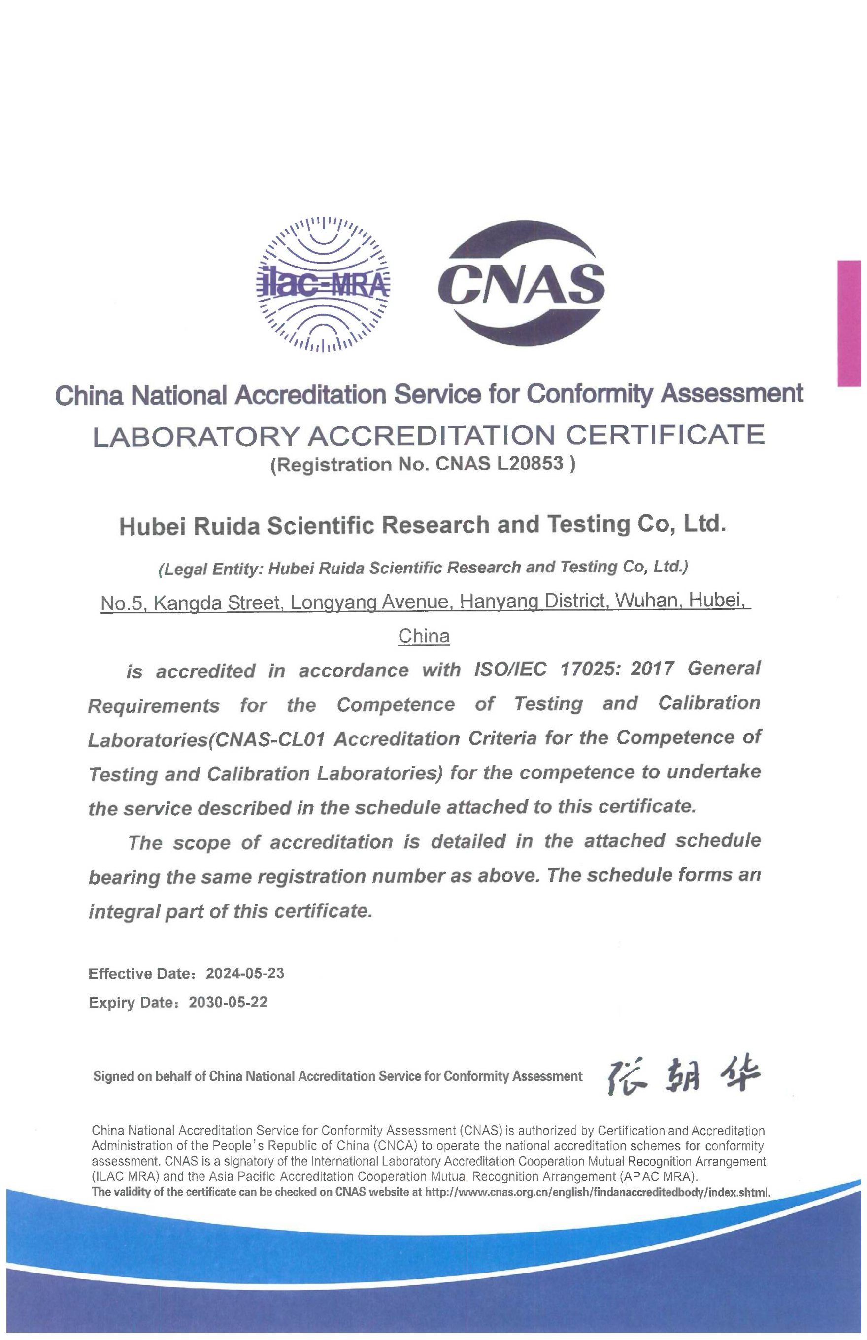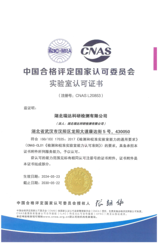 近日,湖北路橋瑞達檢測公司順利通過中國合格評定國家認可委員會(CNAS)各級審核,取得“實驗室認可證書”,標(biāo)志著湖北路橋瑞達檢測公司首次躋身國家級認可實驗室行列,具備按照有關(guān)國際認可準(zhǔn)則開展檢測服務(wù)的能力。