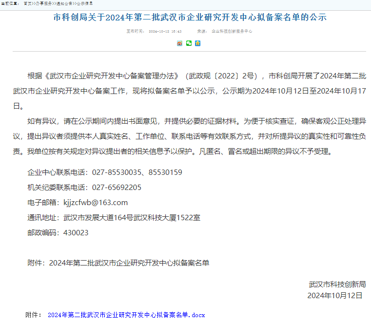 近日,武漢市科創局公布了2024年第二批武漢市企業研究開發中心備案名單,湖北路橋旗下湖北瑞達科研檢測有限公司研究開發中心榮幸入選。這是繼榮獲國家“高新技術企業”稱號后,瑞達檢測公司在科技創新領域取得的新突破。