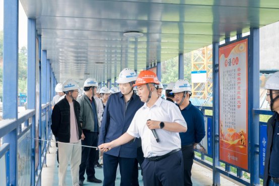 朱紅明一行先后參觀了鄂州側主塔、錨碇、智慧梁場,燕磯長江大橋YJTJ-3項目總工程師羅航對超大錨碇基礎施工、一體化智能筑塔機+鋼筋部品化、復雜地質大直徑超長樁基成孔施工、不同垂度四主纜懸索橋主纜及主梁架設等先進建造技術作現場講解。