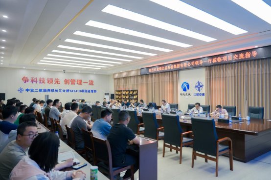 4月22日,湖北路橋黨委委員、副總經理、總工程師朱紅明帶領公司技術骨干前往中交二航局燕磯長江大橋YJTJ-3項目建設現場,觀摩學習并座談交流。