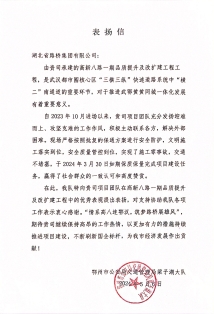 信中指出,在項(xiàng)目工期緊、任務(wù)重、交通流量大、凍雨等諸多不利因素的環(huán)境下,項(xiàng)目團(tuán)隊(duì)主動(dòng)作為,攻堅(jiān)克難,憑借凝心聚力、能打硬仗的工作作風(fēng)突圍破局,以高標(biāo)準(zhǔn)、高質(zhì)量的工作態(tài)度完成項(xiàng)目建設(shè)任務(wù),圓滿落實(shí)了省委省政府“一年貫通”的總體要求,贏得社會(huì)各界的一致認(rèn)可和高度贊賞。