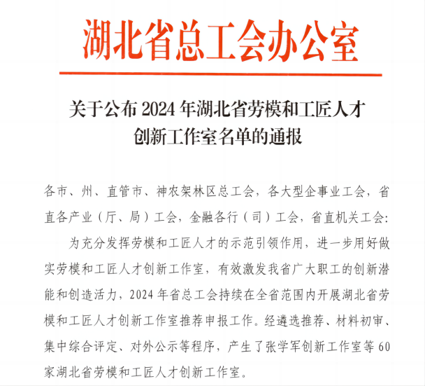 近日,湖北省總工會公布了2024年湖北省勞模和工匠人才創新工作室名單,湖北路橋“殷源創新工作室”光榮上榜