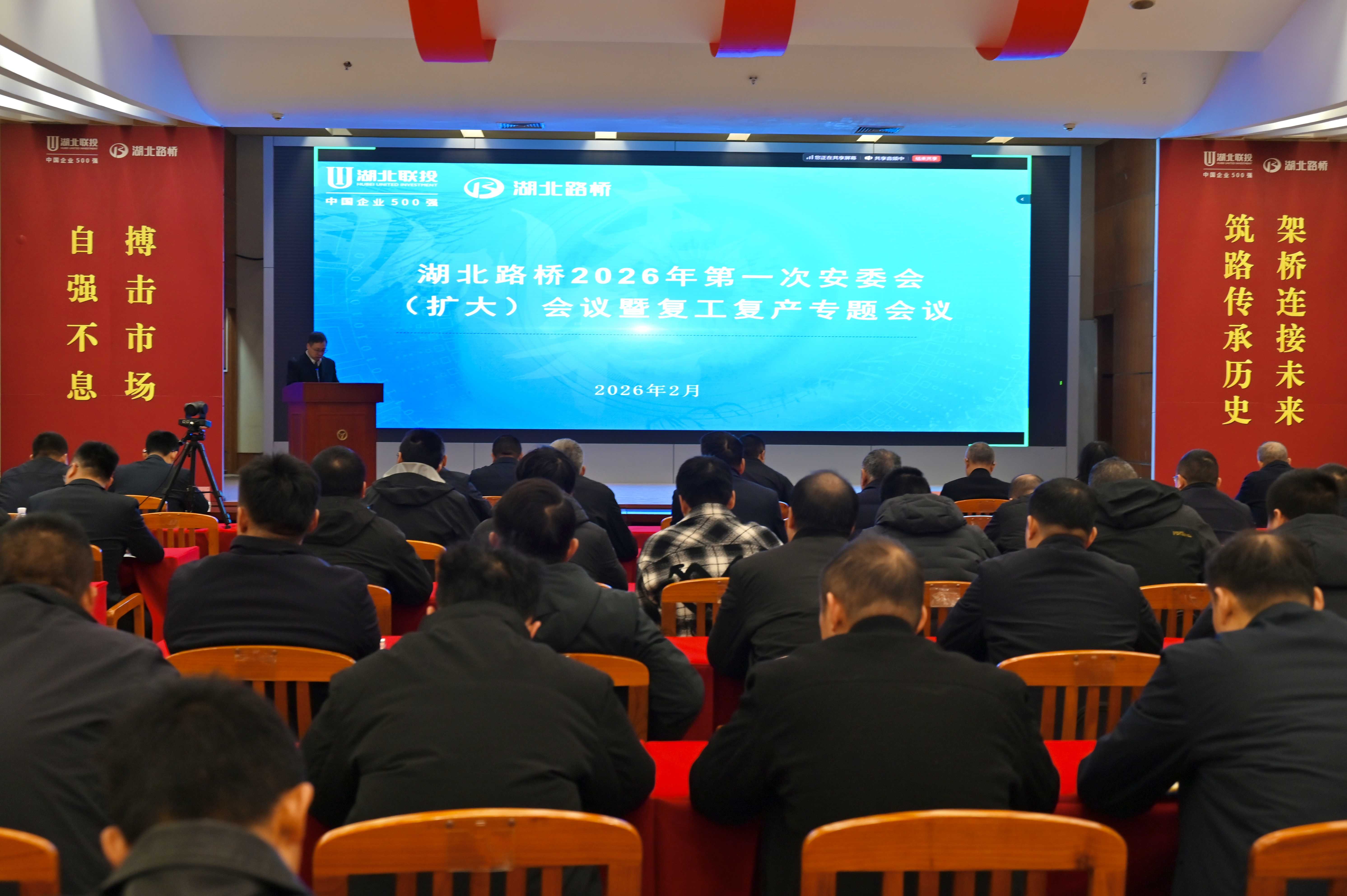 2月26日,湖北路橋召開2026年第一次安委會(擴大)會議暨復(fù)工復(fù)產(chǎn)安全生產(chǎn)專題會議。會議深入貫徹湖北聯(lián)投2026年一季度“開門紅、開門好”工作會議精神,動員全體干部職工收心歸位、統(tǒng)一思想、壓實責(zé)任,抓實復(fù)工復(fù)產(chǎn)安全生產(chǎn)工作,為公司年度安全發(fā)展筑牢基礎(chǔ)。公司黨委書記、董事長潘新平出席會議并講話,黨委副書記、總經(jīng)理鄭杰作復(fù)工復(fù)產(chǎn)動員并強調(diào)安全工作,黨委委員、副總經(jīng)理寧繼康分析當(dāng)前安全生產(chǎn)形勢,部署2026年度安全環(huán)保重點工作及節(jié)后復(fù)工復(fù)產(chǎn)具體任務(wù)。