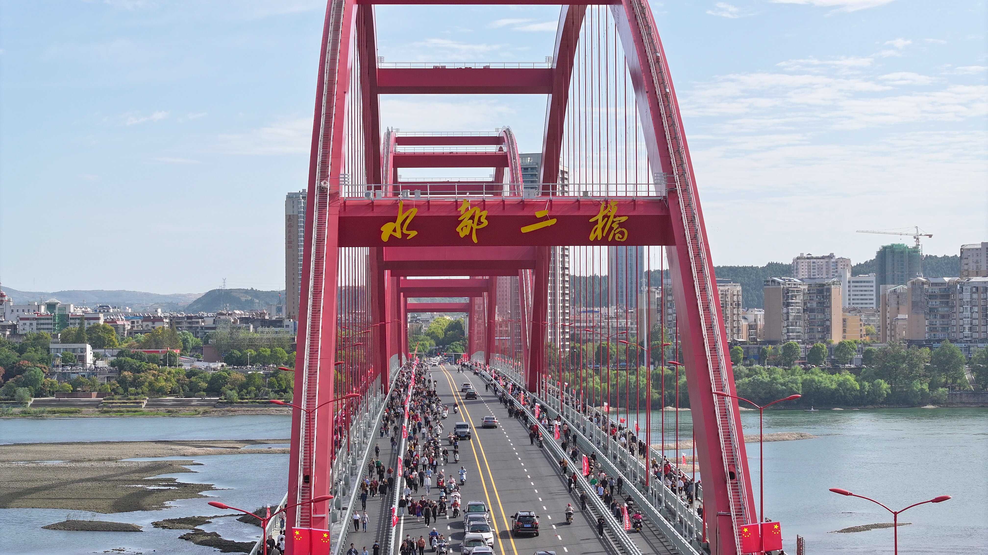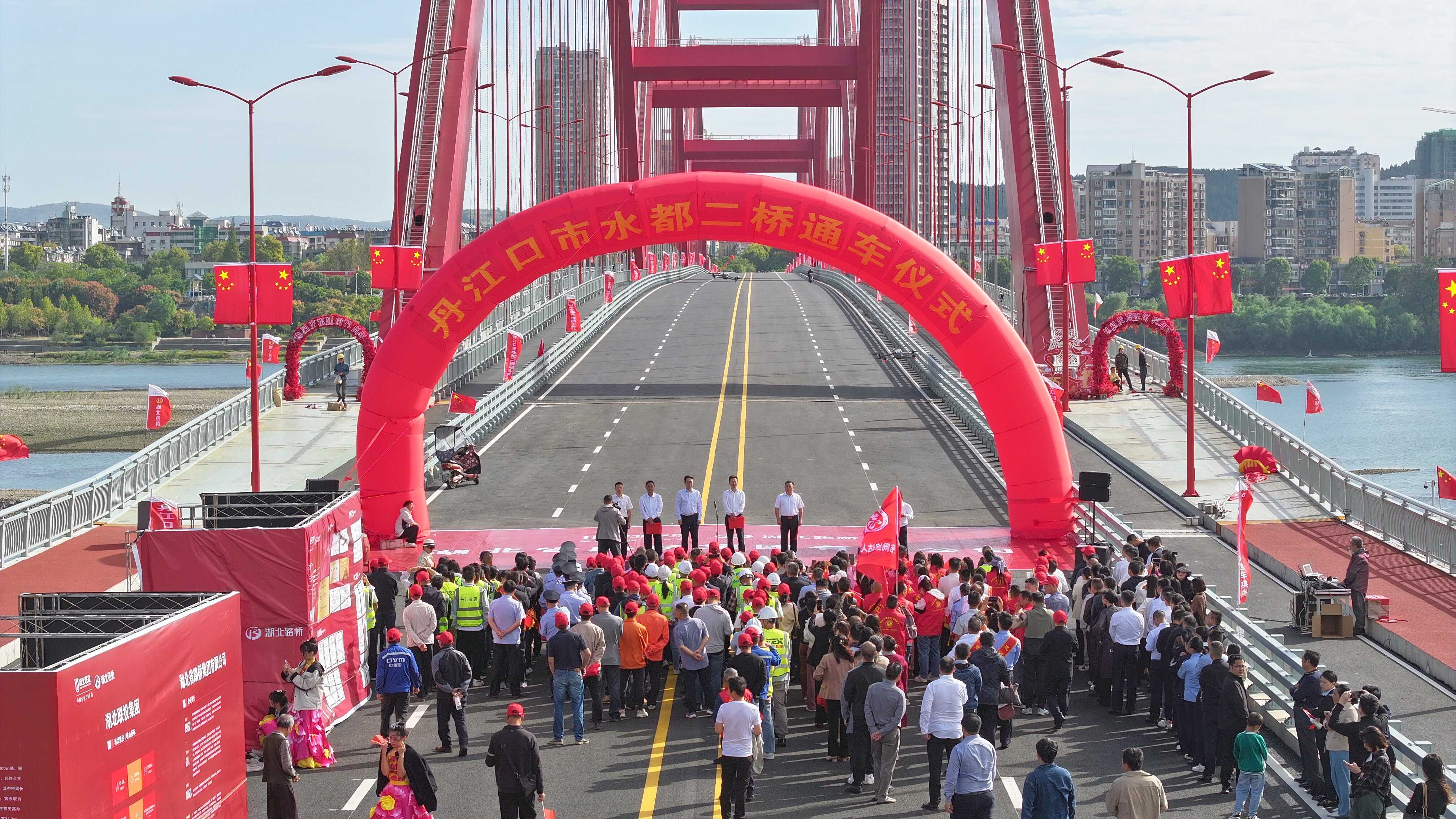 10月1日,由聯投湖北路橋承建的國內最大三跨連續鋼箱系桿拱橋——水都二橋正式通車。丹江口市委常委、常務副市長裴胡軍,市人大常委會副主任、市交通運輸局黨組書記陳鈞,副市長趙曉明,市政協副主席、黨組成員夏成樸出席通車儀式并講話,湖北路橋黨委副書記、執行總經理鄭杰出席通車儀式并致辭。