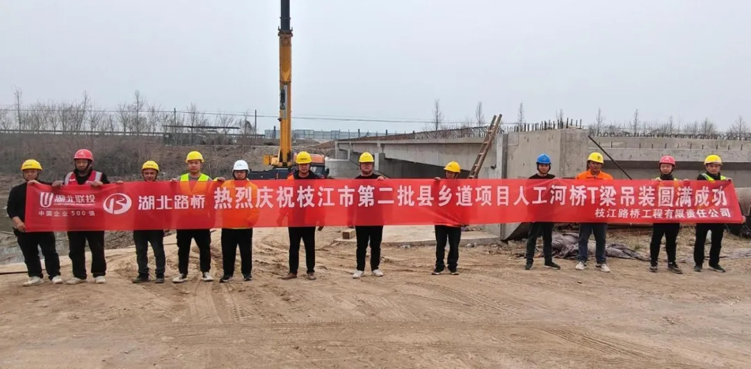 3月1日,隨著最后一片T梁精準落位,枝江路橋第二批縣鄉道改造工程順利完成了龍葵線東段人工河橋T梁吊裝任務。這一關鍵節點的突破,標志著人工河橋梁主體結構施工取得重大進展,為后續橋面鋪裝及實現通車目標奠定了堅實基礎。
